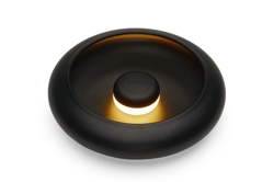 Auf der Rückseite von Oloha befindet sich eine Öse, die das Aufhängen an der Wand erleichtert. Man kann die Lampe auch als Tischlampe verwenden, da sie in Form einer Schale gestaltet ist, in der man Dinge aufbewahren kann.