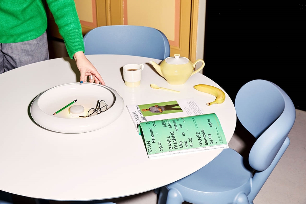 Die Lampe ist in den Farben desert, sage, lobby red, anthrazit und jet blue erhältlich und in drei Größen sowie als Set verfügbar.