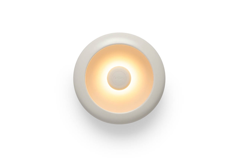 Die Akkulampe besteht aus einem Schirm aus beschichtetem Metall und die Lampe ist aus Silikon gefertigt. Das Licht kann stufenweise gedimmt werden, indem man sanft auf den Ring in der Mitte drückt. Die Lampe gibt ein warmes Licht ab, aber es ist die Farbe der Lampe, die die Stimmung des ausgestrahlten Lichts beeinflusst.