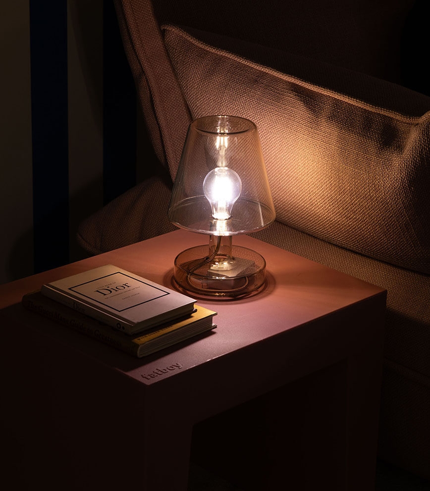 Fatboy Transloetje ist getarnt als eine altmodische Glühbirne, aber im Inneren ist sie eine energieeffiziente LED-Lampe. Eine feine kleine Batterielampe / Tischlampe, die in verschiedenen schönen Farben erhältlich ist. Transloetje ist wiederaufladbar und hat 3 verschiedene Lichtstufen, die der Batterie dieser Retro-Tischlampe eine Lebensdauer von 9, 15 oder sogar 20 Stunden geben.