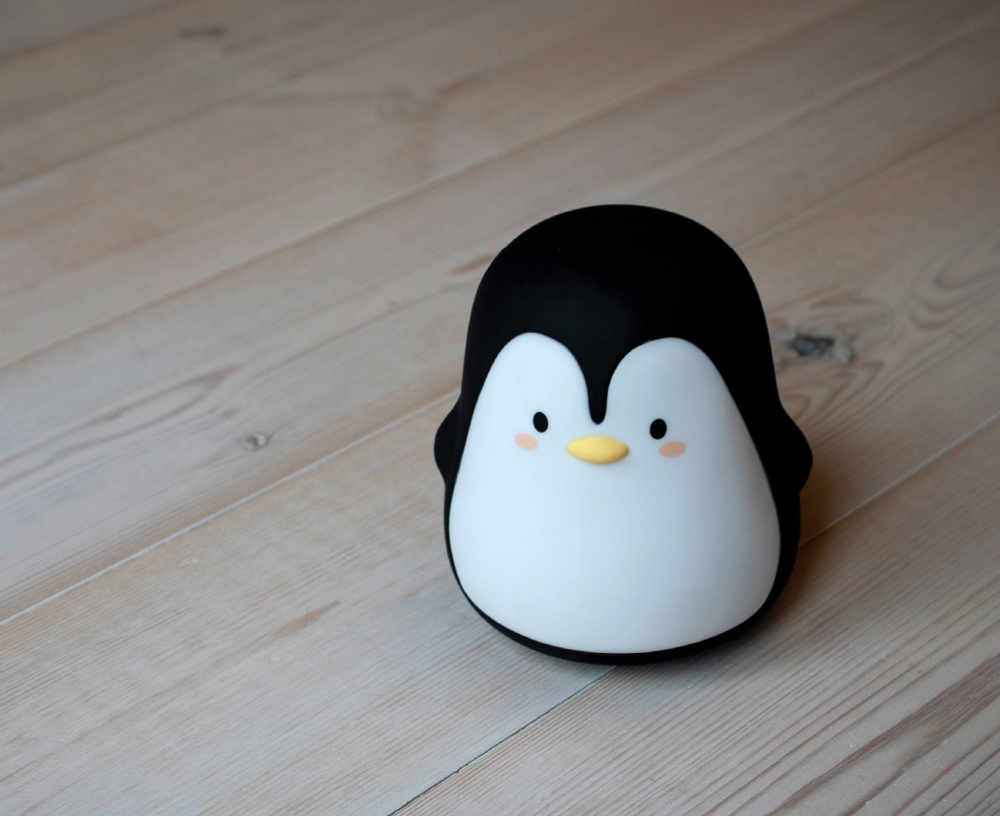 Der Pinguin ist eine LED-Lampe aus Silikon für 'Soft Touch'.