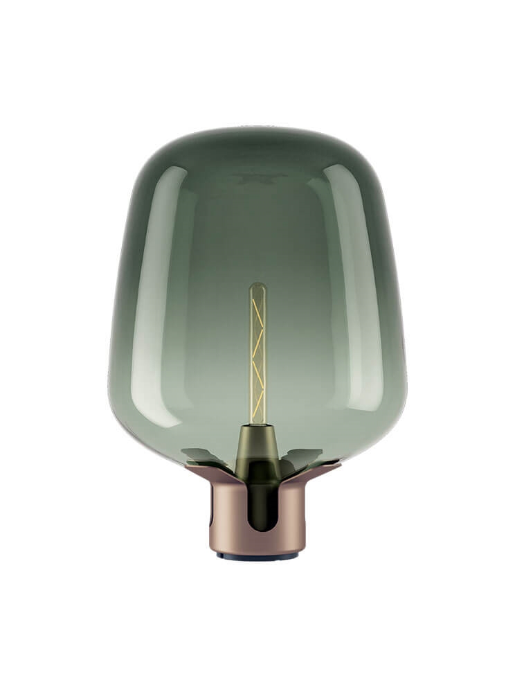 Flar ist inspiriert von traditionellen Sturmlaternen mit einem Glasschirm, der die Lichtquelle schützend umschließt. Der getönte Schirm sorgt für ein weiches Licht, sodass der Schein der eleganten Lampe an eine moderne Kerze erinnert. Der Name Flar wurde gewählt, um an eine intensive Flamme, ein Leuchten oder einen Lichtausbruch zu erinnern.