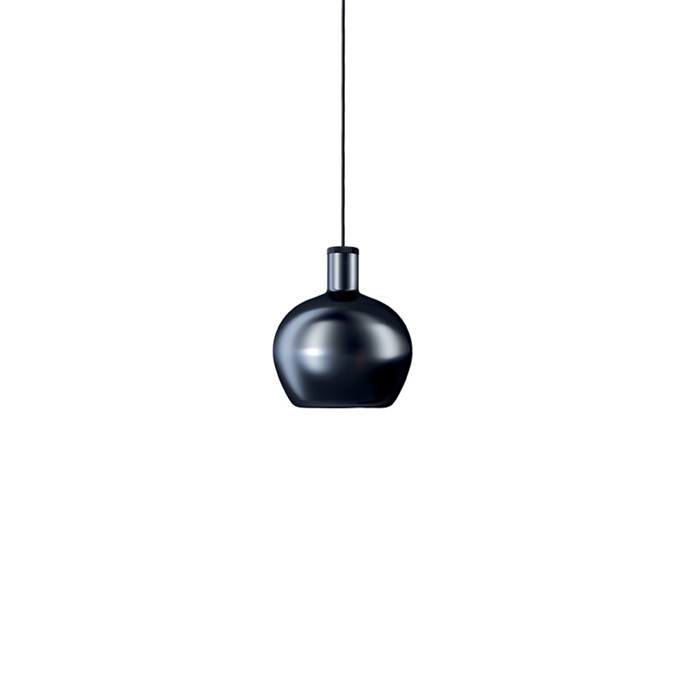 Das Design der Leuchte konzentriert sich besonders auf den Kontrast zwischen der industriellen metallischen Oberfläche und dem feinen geblasenen Glas.