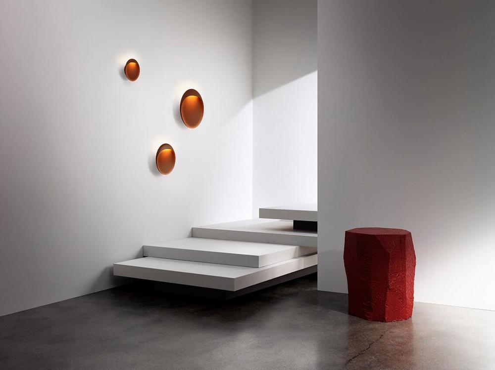 Die Flindt Wandleuchte ist in Ø20, Ø30 und Ø40 in Weiß, Alu und Corten erhältlich.