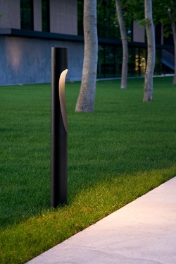 Der Gartenpoller hat ein einfaches, ruhiges und stilvolles Erscheinungsbild. Er beleuchtet Außenbereiche auf sanfte Weise, dank seiner asymmetrischen Aussparung und Neigung. Es funktioniert fast wie ein Reflektor, der das Licht weich, gleichmäßig und blendfrei nach unten wirft.