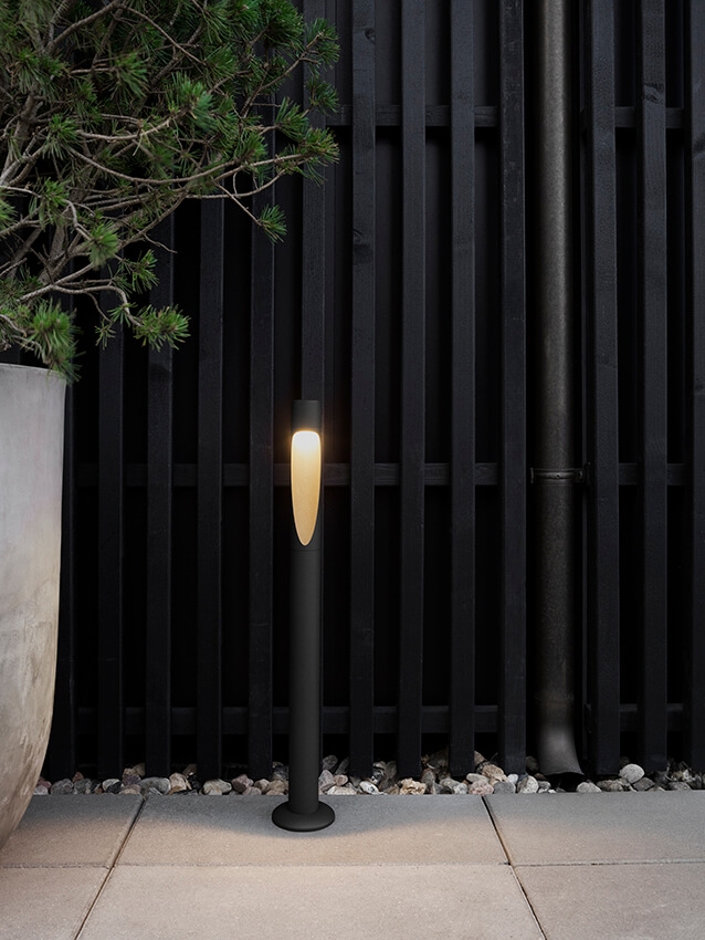 Der Poller ist sowohl allein als auch in Kombination mit anderen Pollern schön. Flindt Gartenpoller ist mit verschiedenen Installationen und mit 2700K und 3000K erhältlich.