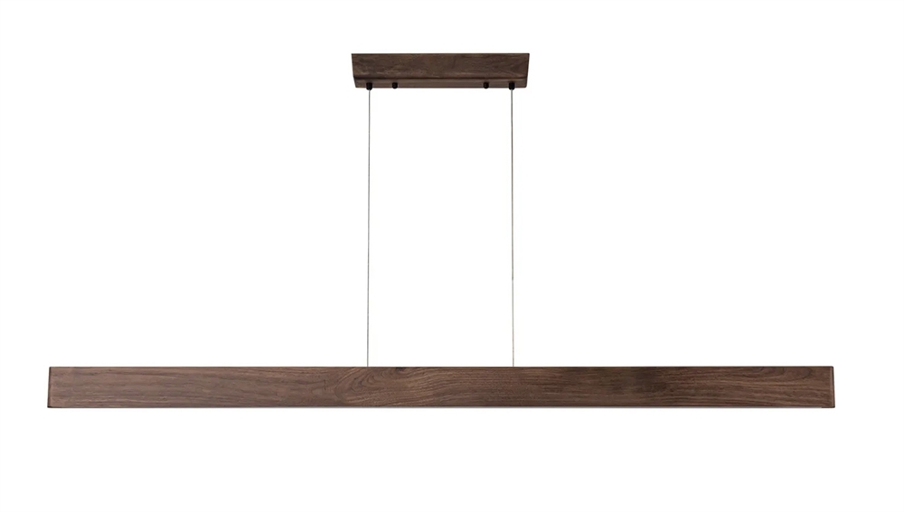 Die Pendelleuchte ist mit zwei verschiedenen Holzfinish erhältlich – Walnuss mit einem warmen, dunklen Schimmer oder schwarze Esche, die für einen moderneren Look sorgt.