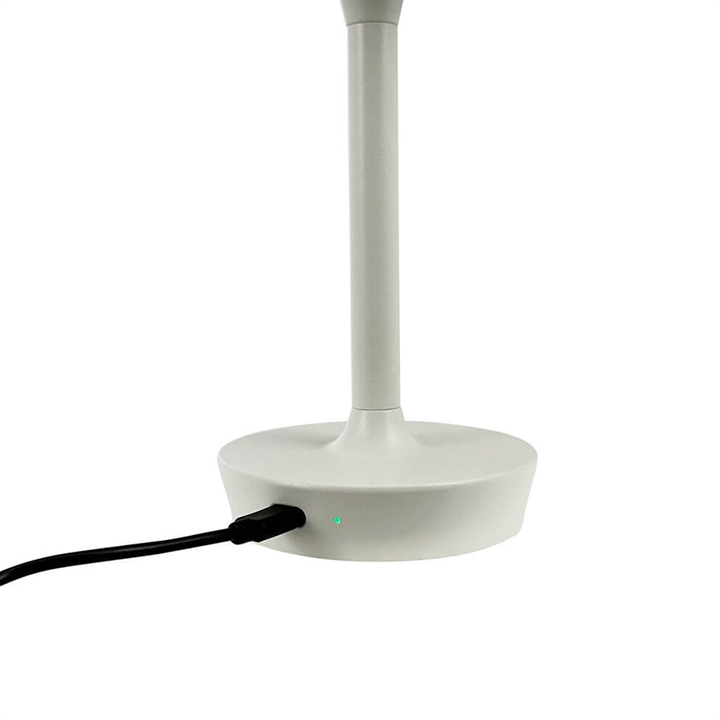 Die Batterielampe Flow wird über das mitgelieferte USB-Kabel aufgeladen und über die Touch-Funktion oben am Lampenschirm ein- und ausgeschaltet. Sie ist in drei Stufen dimmbar, sodass Sie die passende Helligkeit wählen können.