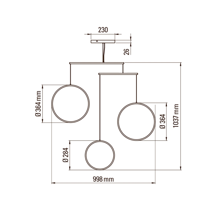 Diese sehr elegante Pendelleuchte besteht aus 3 leuchtenden Scheiben aus Acrylglas. Das Glas erzeugt einen einzigartigen Effekt und zusammen mit der geometrischen Form der Leuchte auch einen Blickfang im Raum.