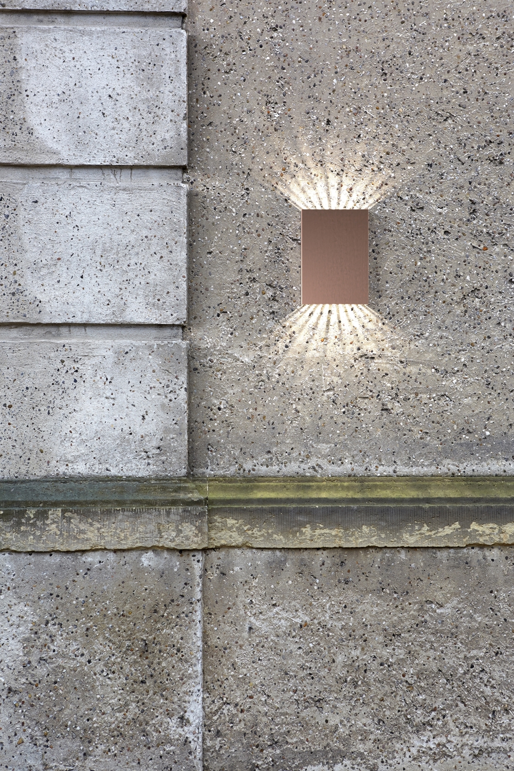 Fold liefert ein weißes und klares Licht und ist für schlechtes Wetter ausgelegt. Hängen Sie die Lampe daher im Freien auf und lassen Sie sie in den dunklen Stunden leuchten. Die Wandleuchte kann auch problemlos im Innenbereich, zum Beispiel im Badezimmer oder Flur, aufgehängt werden.