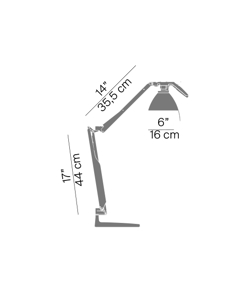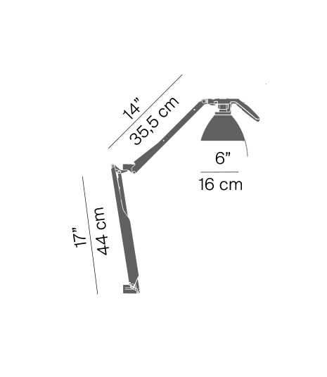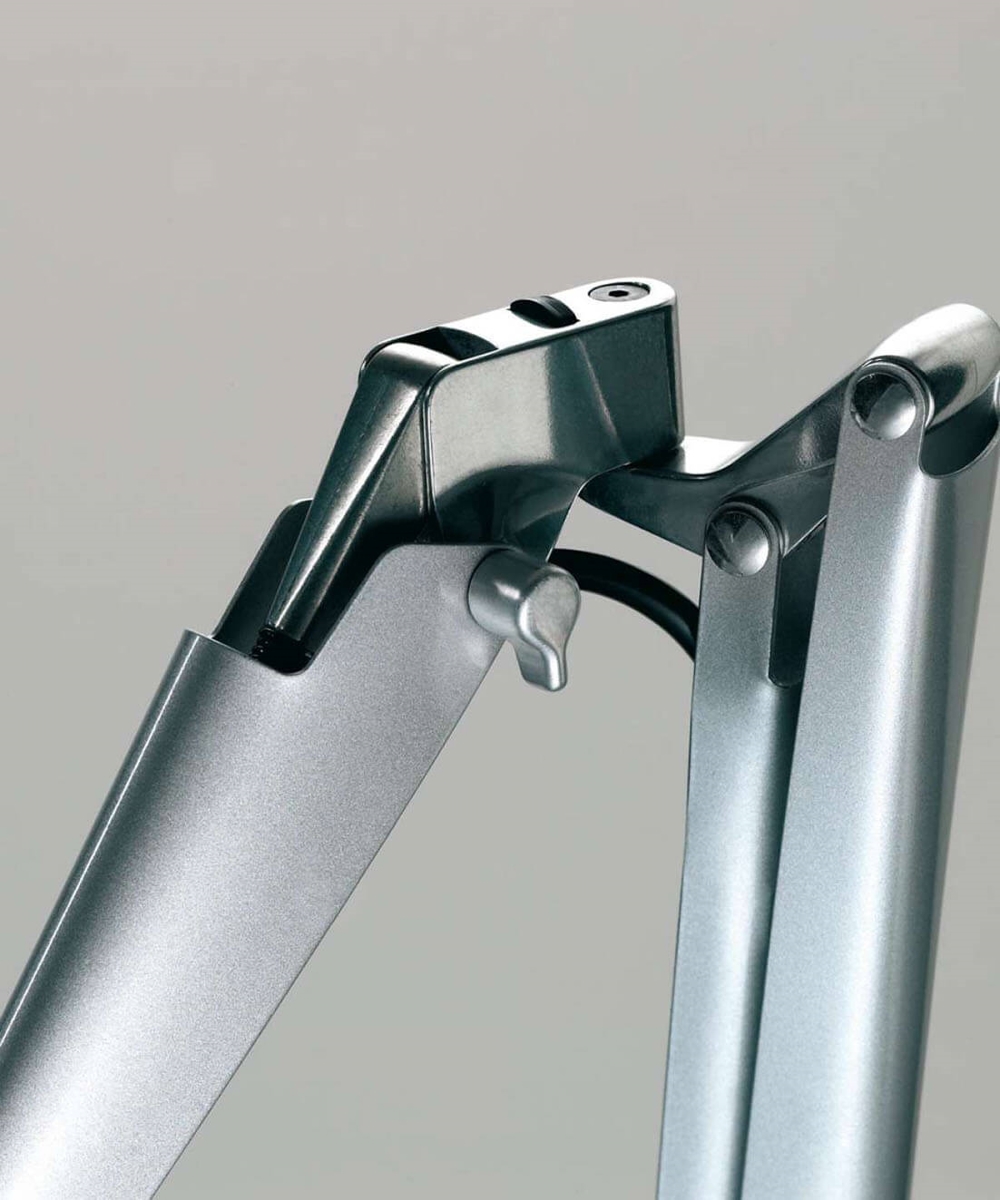 Die praktische und robuste Fortebraccio Lampe kann als funktionelle Schreibtischleuchte verwendet oder an der Wand als effektives Arbeitslicht montiert werden. Ein flexibles Gelenk zwischen Unterarm und Oberarm ermöglicht es, dass die beiden Arme unabhängig voneinander sowohl horizontal als auch vertikal gedreht werden können. Der Ein-/Ausschalter befindet sich am praktischen Griff über dem Schirm, der es ermöglicht, die Lichtausrichtung einfach und präzise zu justieren.
