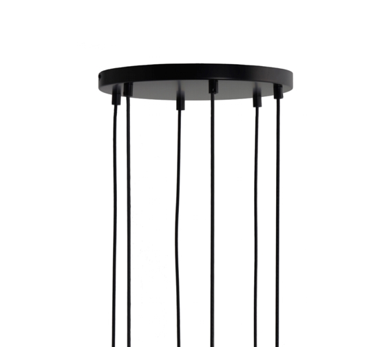 Baldachin in matt schwarz für 6 Pendelleuchten, die in einer schönen Gruppe hängen können.