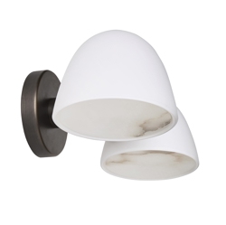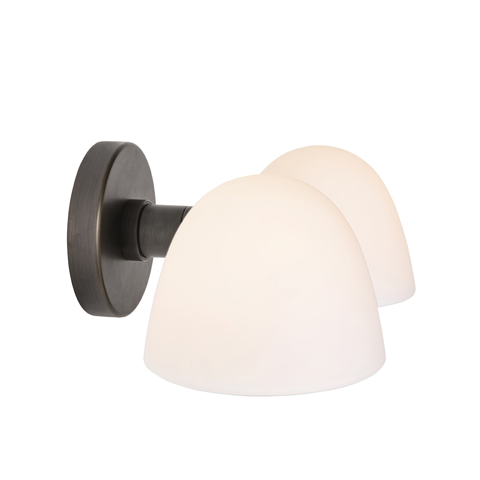 Made by Hand Fuse Double Wandleuchte in brüniertem Messing, Opalglas und Alabaster - entworfen von Groundwork Studio