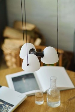 Die Pendelleuchte mit den drei Schirmen ist eine gute Wahl als Beleuchtung über dem Esstisch oder als raffinierte Ergänzung für den Flur oder das Wohnzimmer. Es gibt auch Wandleuchten und wiederaufladbare Tischleuchten in der Lampenserie. Schaffen Sie ein harmonisches Gesamtbild, indem Sie die Leuchten kombinieren.