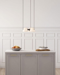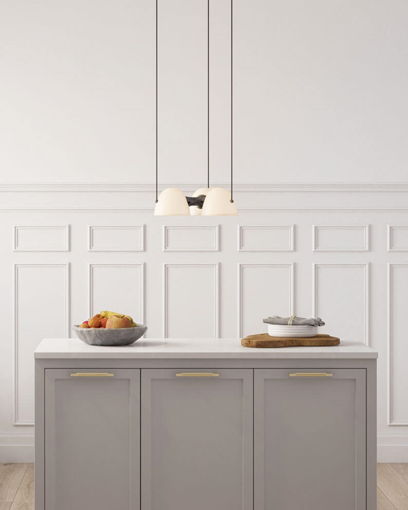 Die Pendelleuchte Triple Fuse hat ein klassisches Design aus langlebigen Materialien wie dreischichtigem Opalglas, Alabaster und brüniertem Messing. Die drei mitgelieferten und austauschbaren Lichtquellen sind hinter durchscheinenden Abdeckungen aus Alabaster platziert, die zusammen mit den Schirmen aus dreischichtigem Opalglas für eine weiche und blendfreie Beleuchtung sorgen.