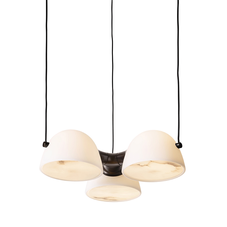 Made by Hand Fuse Triple Pendelleuchte in brüniertem Messing, Opalglas und Alabaster - entworfen von Groundwork Studio