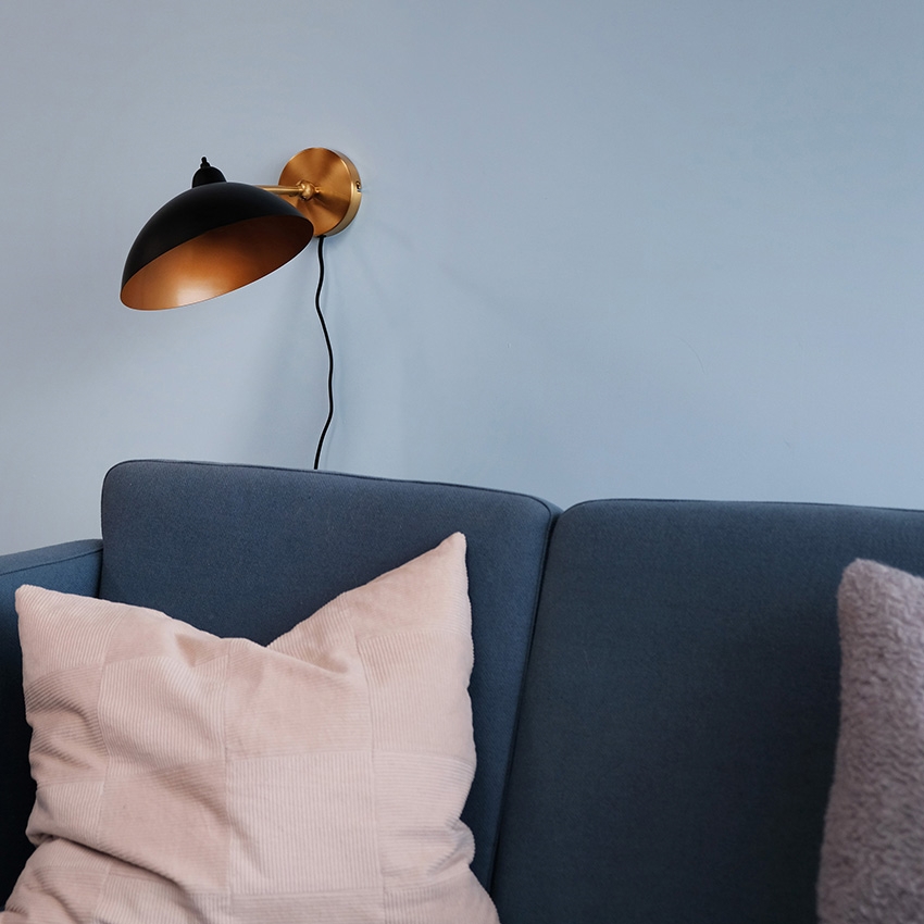 Futura ist eine schöne Wandleuchte, deren Name von dem futuristischen Aussehen des Lampenschirms stammt. Die Lampe hat ein schwarzes Äußeres, während die Innenseite des Lampenschirms aus antikem Messing besteht. Dies schafft eine warme und angenehme Atmosphäre im Zuhause. Zudem befindet sich der Schalter am Lampenschirm, der sich leicht kippen und drehen lässt, sodass das Licht nach Wunsch ausgerichtet werden kann.