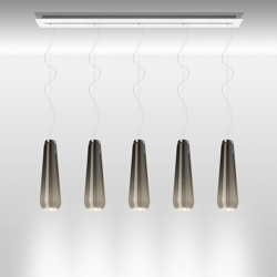 Die Glass Drop Pendelleuchte ist aus mundgeblasenem Glas gefertigt und stellt den flüchtigen Moment des Glases dar, in dem es sowohl flüssig als auch fest ist. Glass Drop erzeugt ein weiches und warmes Licht, das in jeden Raum gut passt.