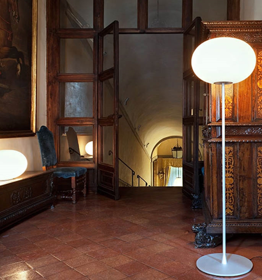 Glo-ball ist eine beliebte und stilvolle Serie von Wand- und Deckenleuchten in verschiedenen Größen sowie Pendel-, Tisch- und Stehleuchten.