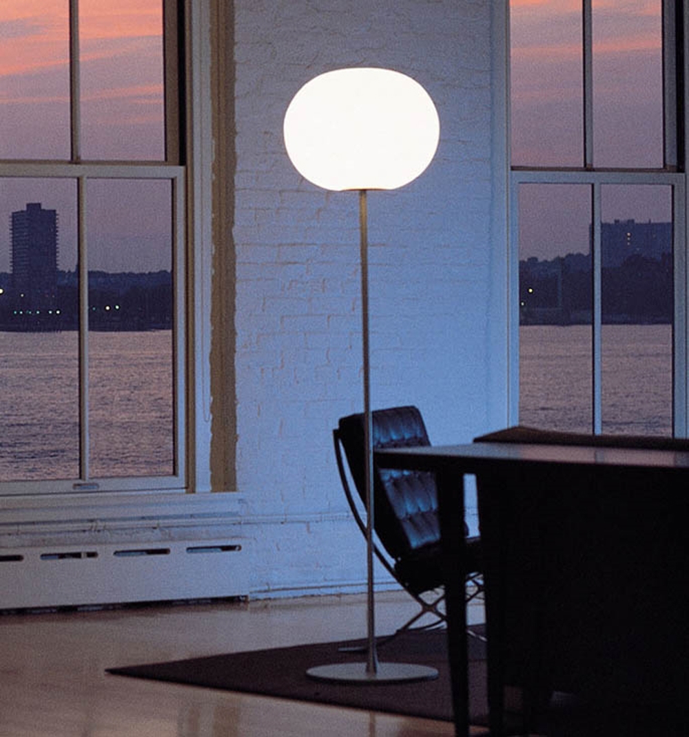 Flos Glo-ball F3 Stehleuchte, Silber - entworfen von Jasper Morrison.