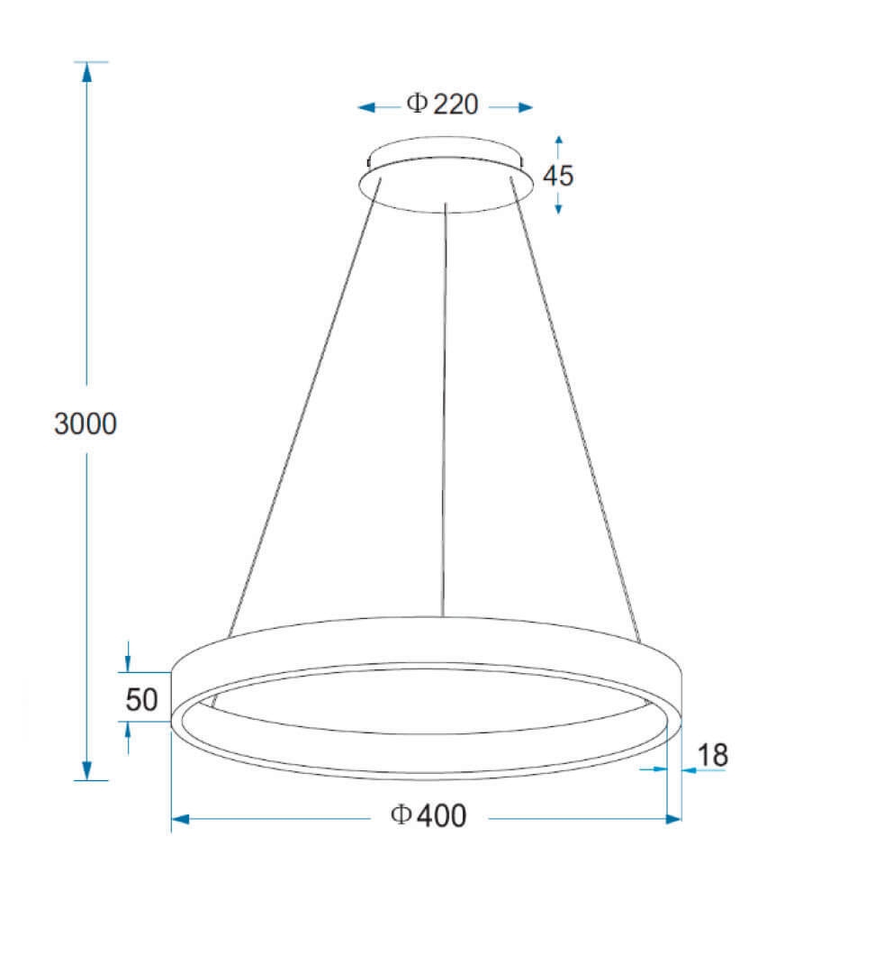 Die Lichtquelle der Pendelleuchte befindet sich auf der Unterseite des Rings.