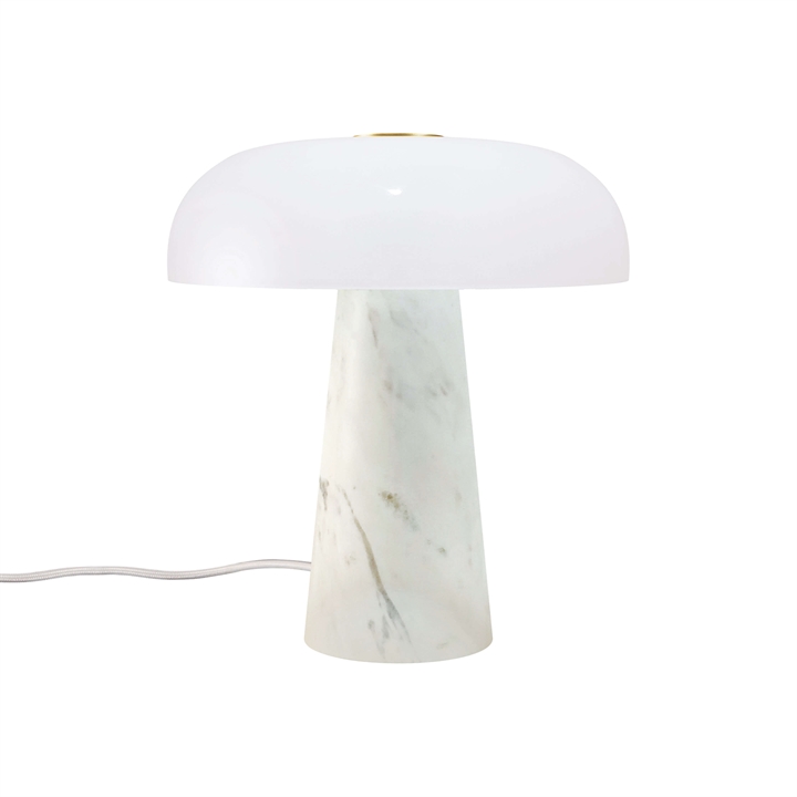 Glossy Mini ist eine elegante Tischlampe mit einem schönen Marmorsockel und einer Oberseite aus gebürstetem Messing. Die Lampe wurde von der dänischen Designerin Maria Berntsen entworfen, die ein minimalistisches nordisches Design mit hochwertigen Materialien schaffen wollte, das jede Lampe einzigartig macht.