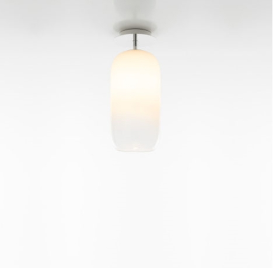 Artemide Gople Mini Deckenleuchte, weiß mit silberfarbener Deckenhalterung - entworfen von BIG.