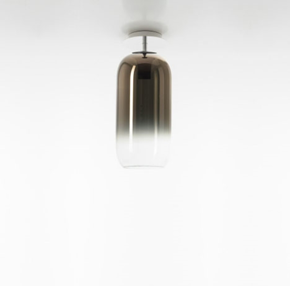 Artemide Gople Mini Deckenleuchte, Bronze mit silberfarbener Deckenhalterung - entworfen von BIG.