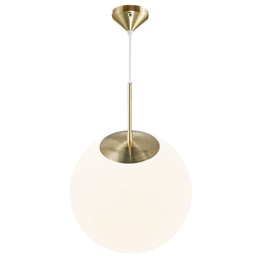 Die Grant 35 Pendelleuchte bietet ein weiches und diffuses Licht dank des opalen Schirms. Der Schirm ist aus mundgeblasenem Glas gefertigt.
