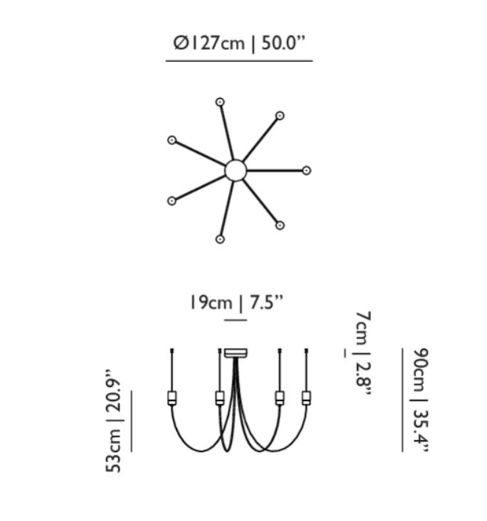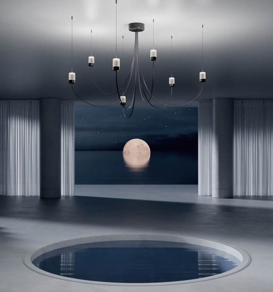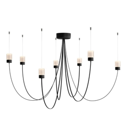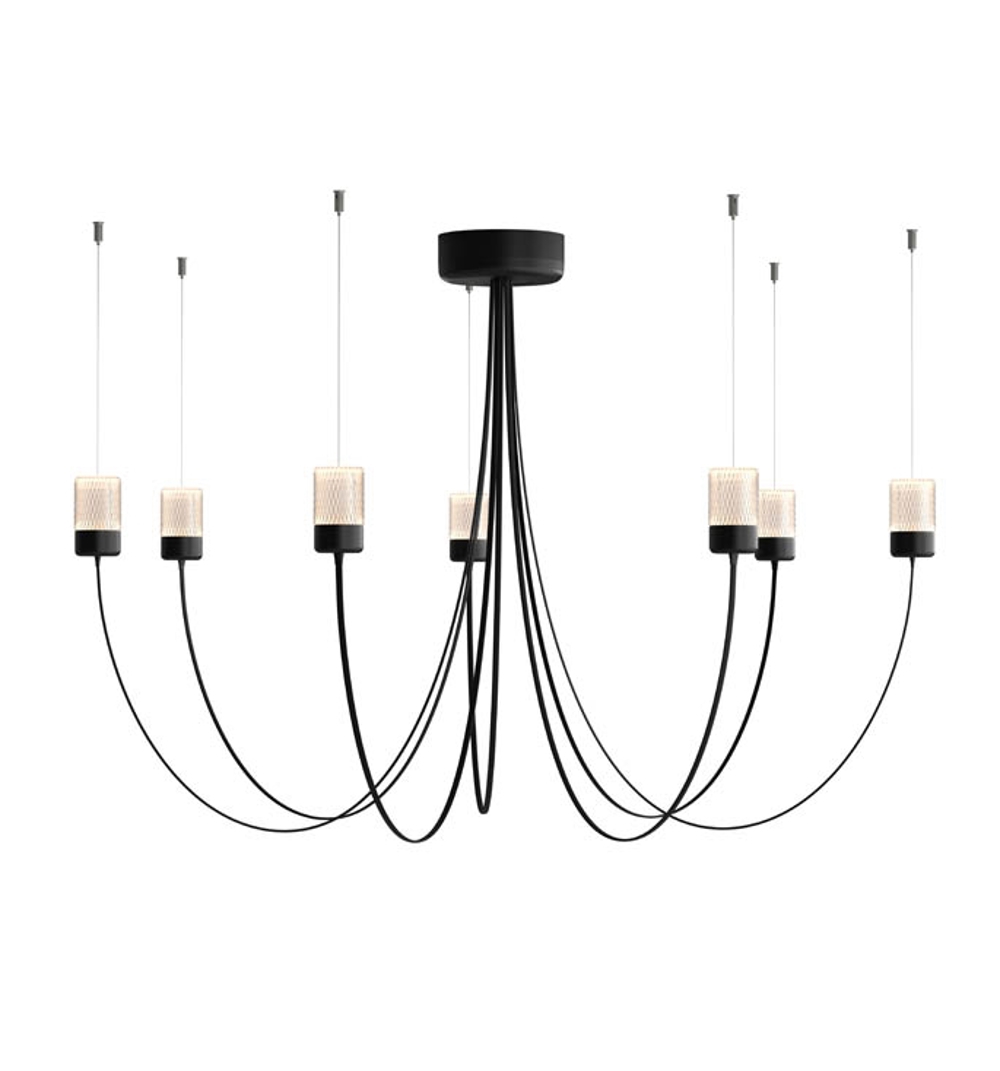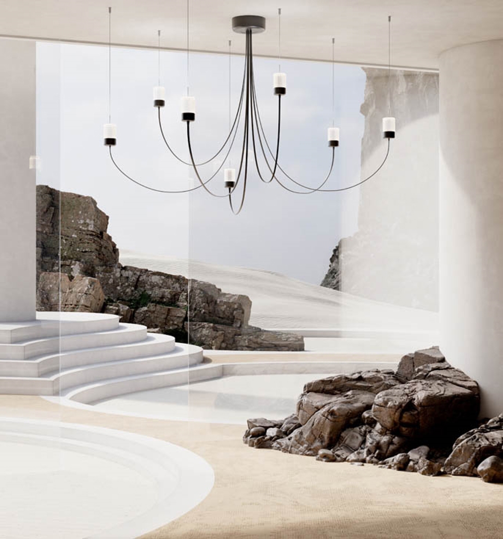 Auf den ersten Blick erkennt man die Flexibilität der Gravity Leuchte nicht; mit den flexiblen Armen des Kronleuchters können Sie den Durchmesser selbst bestimmen – und damit, wie sich das Licht im Raum verteilt.