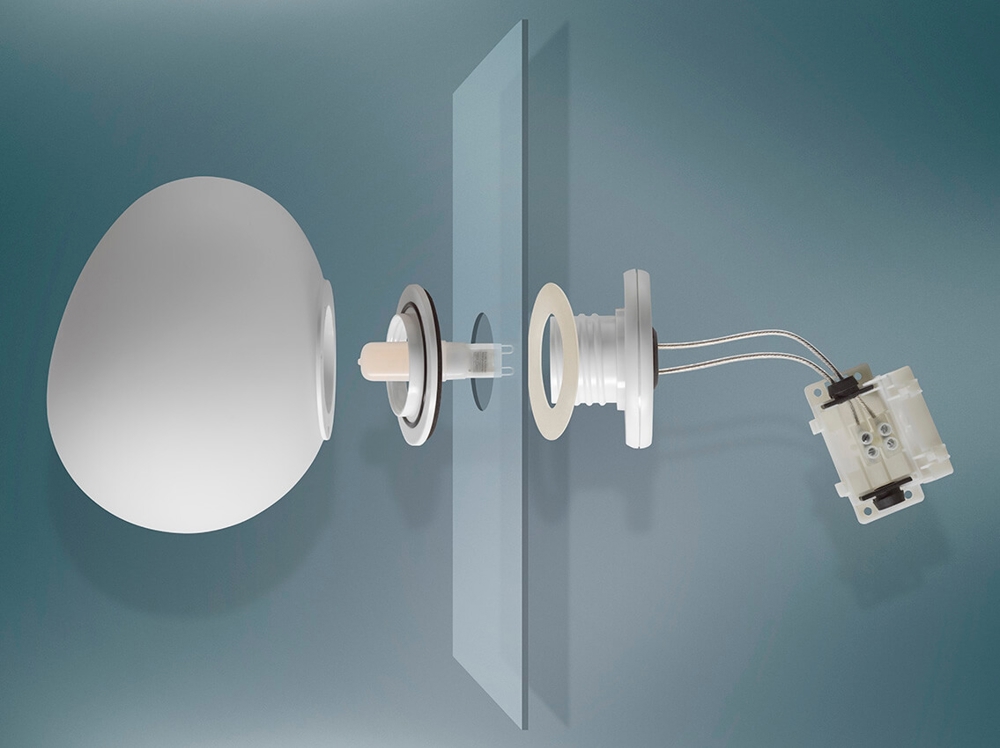 Diese Variante der Gregg Decken- und Wandleuchte ist dank eines speziellen Systems mit Ringbolzen zur Montage an einem Spiegel geeignet und bietet beispielsweise ein gutes Make-up-Licht. Darüber hinaus ist Gregg für Spiegel perfekt als Badezimmerleuchte geeignet, da sie IP44 klassifiziert ist.