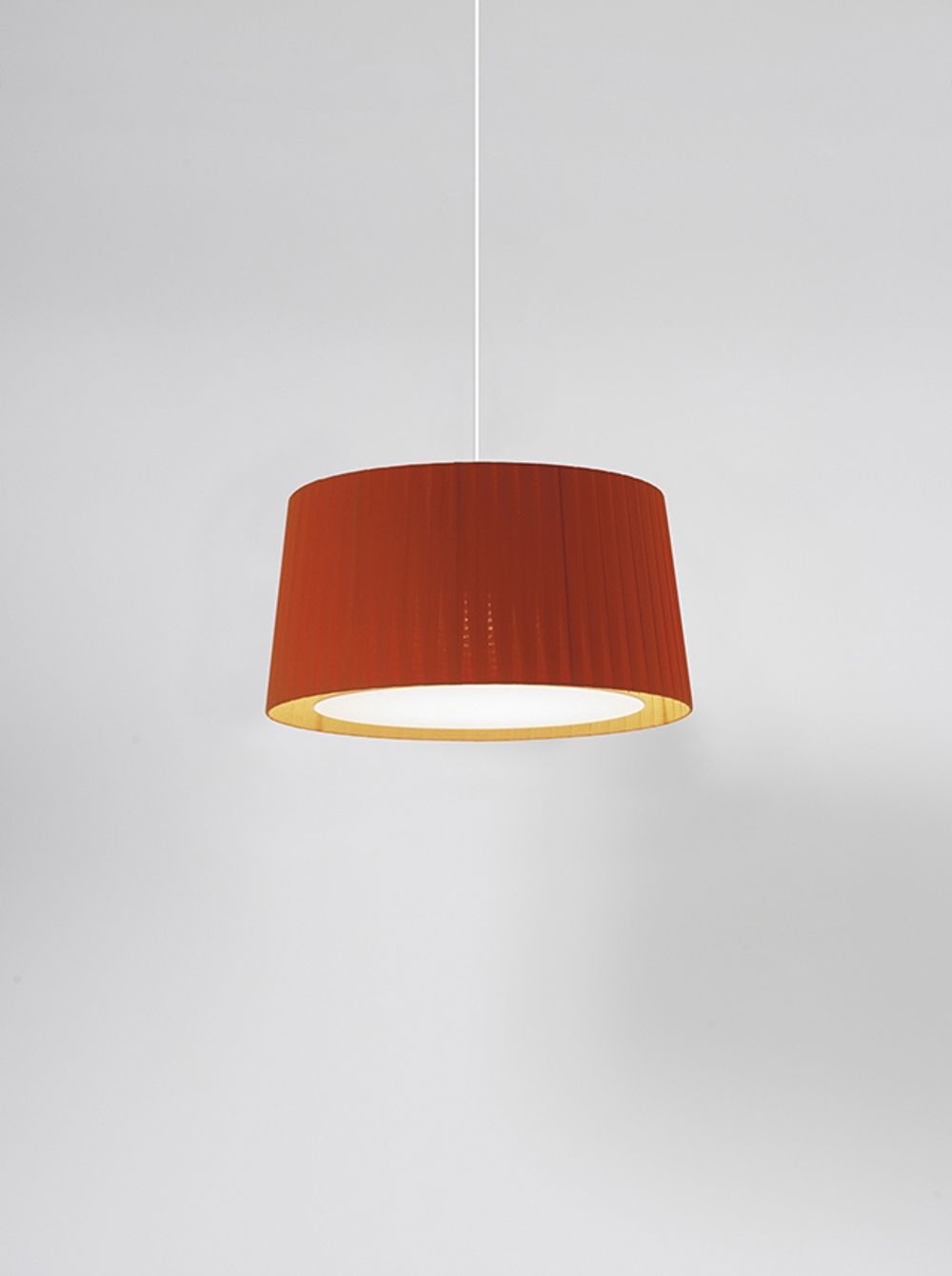 Santa & Cole GT6 Pendelleuchte, roter Schirm mit weißem Kabel & weißem Baldachin.