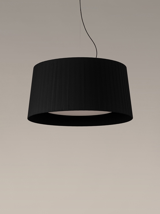 Santa & Cole GT7 Pendelleuchte, schwarz mit Nickel Baldachin.