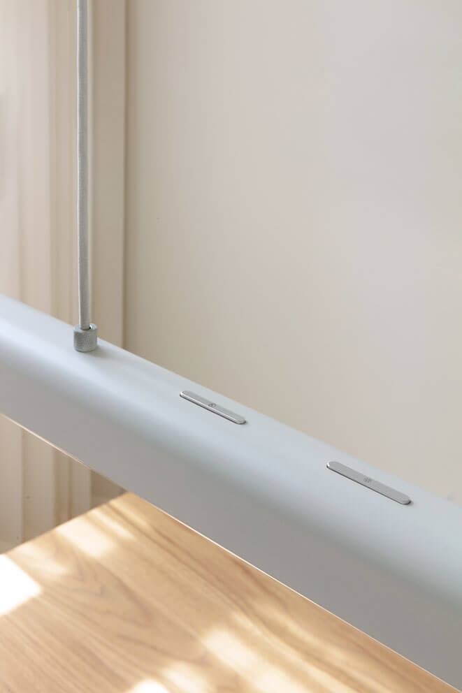 Hazel Branch ist mit ihrem schlanken Design ideal als Beleuchtung über dem Esstisch und kann auch als Küchenpendel oder beispielsweise in einem Konferenzraum verwendet werden. Die längliche Lampe ist sowohl funktional als auch elegant mit einer blendfreien LED-Lichtquelle und ermöglicht die Einstellung der Lichtfarbtemperatur und -stärke über zwei Knöpfe oben am Schirm.