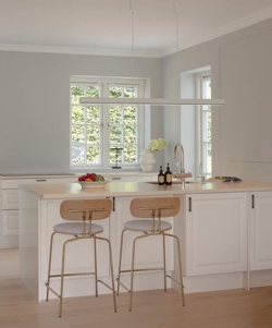 Hazel Branch ist mit ihrem schlanken Design ideal als Beleuchtung über dem Esstisch und kann auch als Küchenpendelleuchte oder beispielsweise in einem Konferenzraum verwendet werden. Die längliche Lampe ist sowohl funktional als auch elegant mit einer blendfreien LED-Lichtquelle und bietet die Möglichkeit, die Farbtemperatur und Helligkeit des Lichts über zwei Knöpfe oben am Schirm einzustellen.