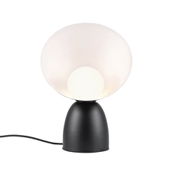 Hello Tischlampe hat ein offenes und einladendes Design, das einen klassischen und einfachen Ausdruck verleiht. Der große offene Schirm umarmt wunderschön die opalweiße Glaskuppel, die sich komplett drehen lässt und somit sowohl direktes als auch indirektes Licht ermöglicht.