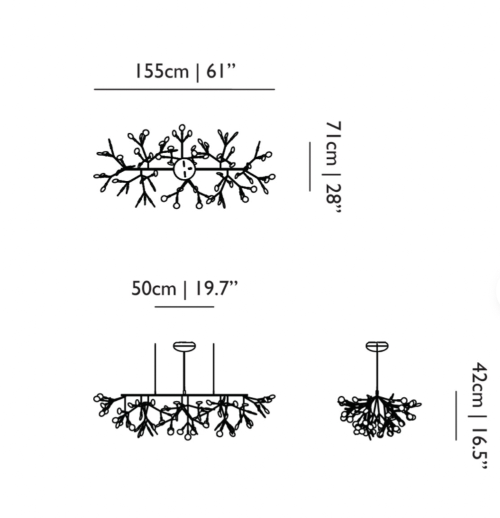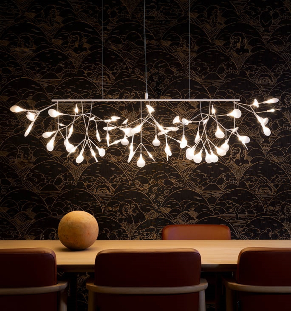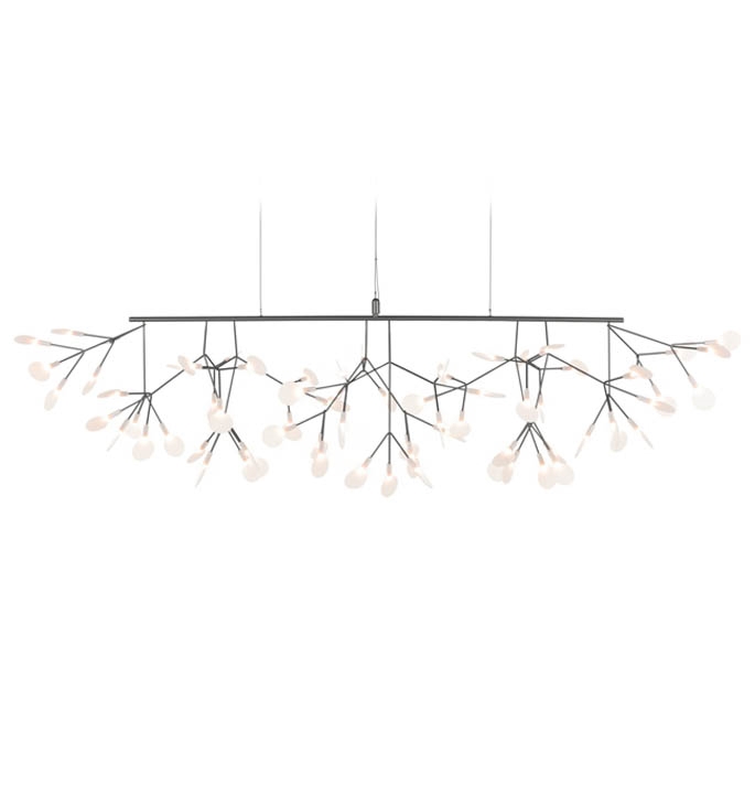 Der absolut fantastische Heracleum III Linear ist die neueste Pendelleuchte der Heracleum-Serie. Es ist eine Pendelleuchte, die denselben einzigartigen Effekt im Raum erzeugt wie ein Kronleuchter - daher wird sie als beide Lampentypen angesehen. Mit Heracleum III Linear, inspiriert von blühenden Zweigen, hat man das Gefühl, dass der schöne Kronleuchter endlos weiterblüht. Die Pendelleuchte dekoriert jeden Raum im Zuhause, wirkt jedoch besonders einzigartig im Eingangsbereich oder über dem Esstisch.