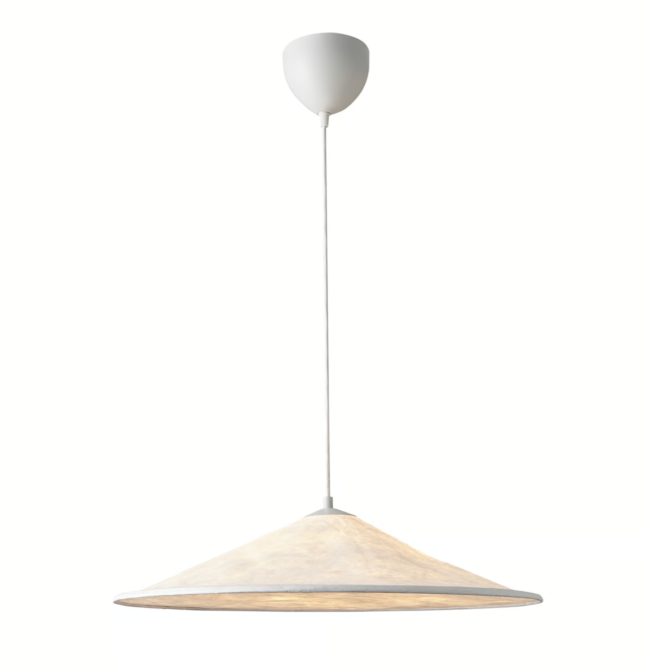 Die Hill Pendelleuchte hat ein modernes japanisches Design, das ein weiches und diffuses Licht erzeugt. Das Licht erscheint gleichmäßig und ruhig im Raum.