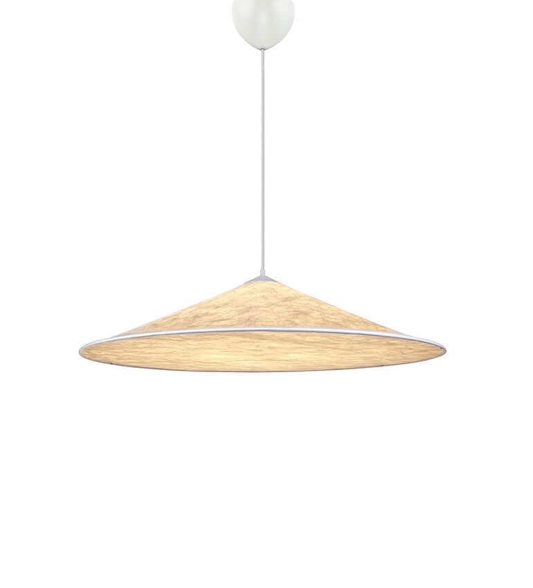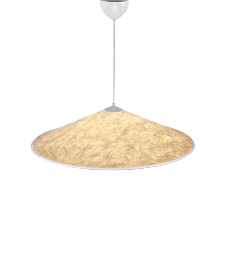 Die Hill Pendelleuchte hat ein modernes japanisches Design, das ein weiches und diffuses Licht erzeugt. Das Licht erscheint gleichmäßig und ruhig im Raum.