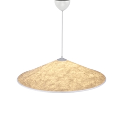 Die Pendelleuchte ist auch in Ø55 cm erhältlich - beide sind aus Papier gefertigt.