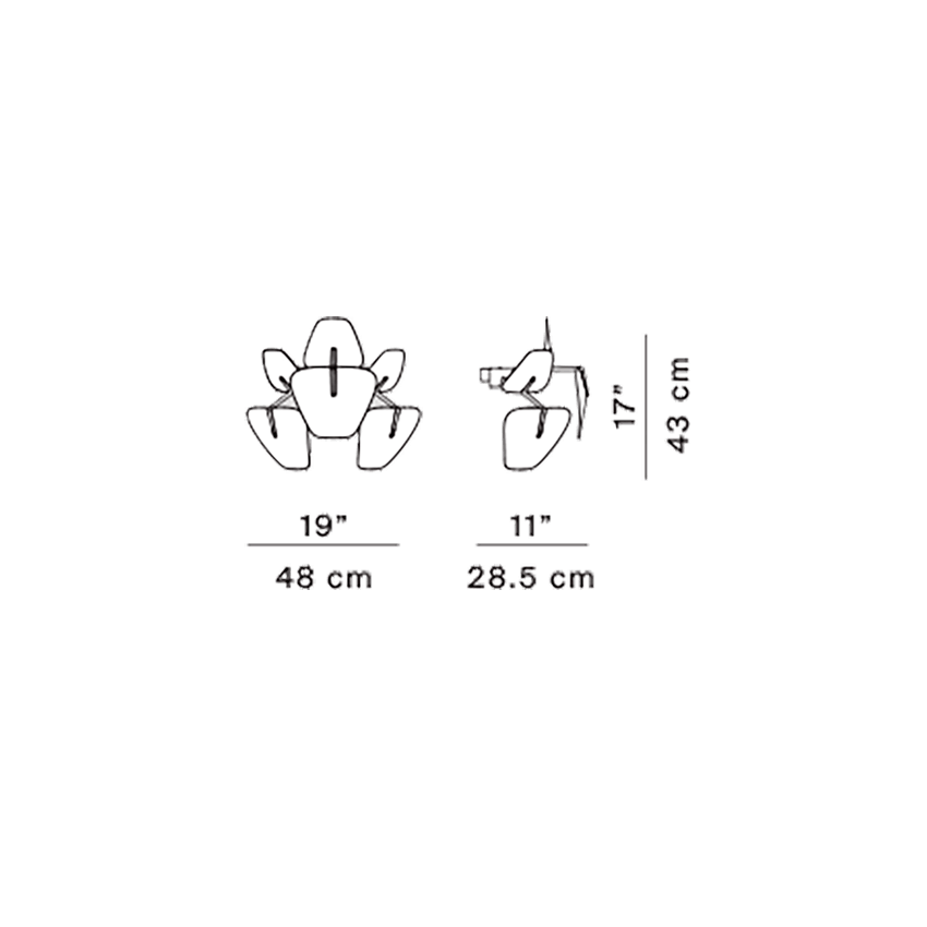 Hope ist inspiriert von den traditionellen Kristalllüstern, die Luceplan neu interpretiert hat. Die Hope Wandleuchte besteht aus Materialien wie Polycarbonat, wobei die Struktur der Schirme aus poliertem Edelstahl gefertigt ist. Darüber hinaus verfügt die Lampe über prismatische Linsen, die das Licht auf kristallartige Weise im Raum reflektieren. Das Design der Lampe erinnert an einen Diamanten und schmückt daher auch den Raum, in dem sie platziert wird.
