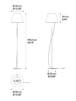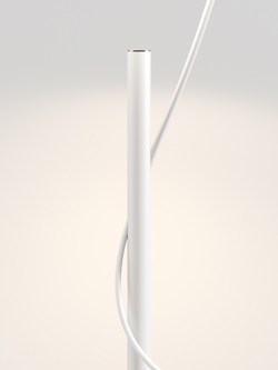 Die Hover Stehlampe ist mit einem Lampenschirm gestaltet, der über dem Lampenkörper zu schweben scheint - nur verbunden durch ein einzelnes Kabel, das durch den Stiel verläuft und am anderen Ende herauskommt. Dies verleiht der Lampe eine Leichtigkeit im Ausdruck.
