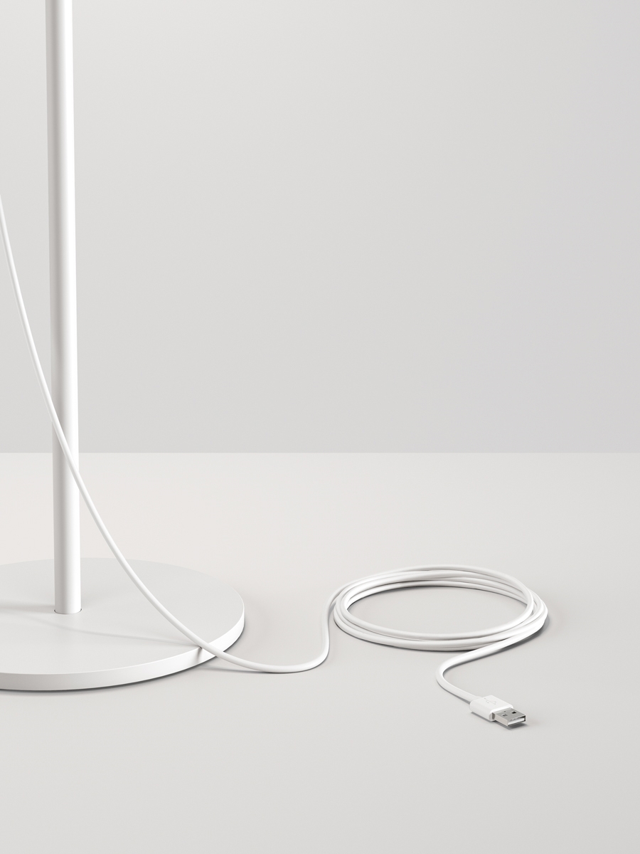 Der Designer hat sorgfältig alle technischen Funktionen, die normalerweise außen an der Lampe sind, in die innere Struktur der Lampe integriert. Darüber hinaus erfolgt die Stromversorgung in Form eines USB-Kabels.