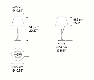 Die Hover Tischleuchte ist mit einem Lampenschirm gestaltet, der über dem Lampenkörper zu schweben scheint - nur verbunden durch ein einzelnes Kabel, das durch den Stiel verläuft und am anderen Ende herauskommt. Dies verleiht der Lampe eine Leichtigkeit im Ausdruck.