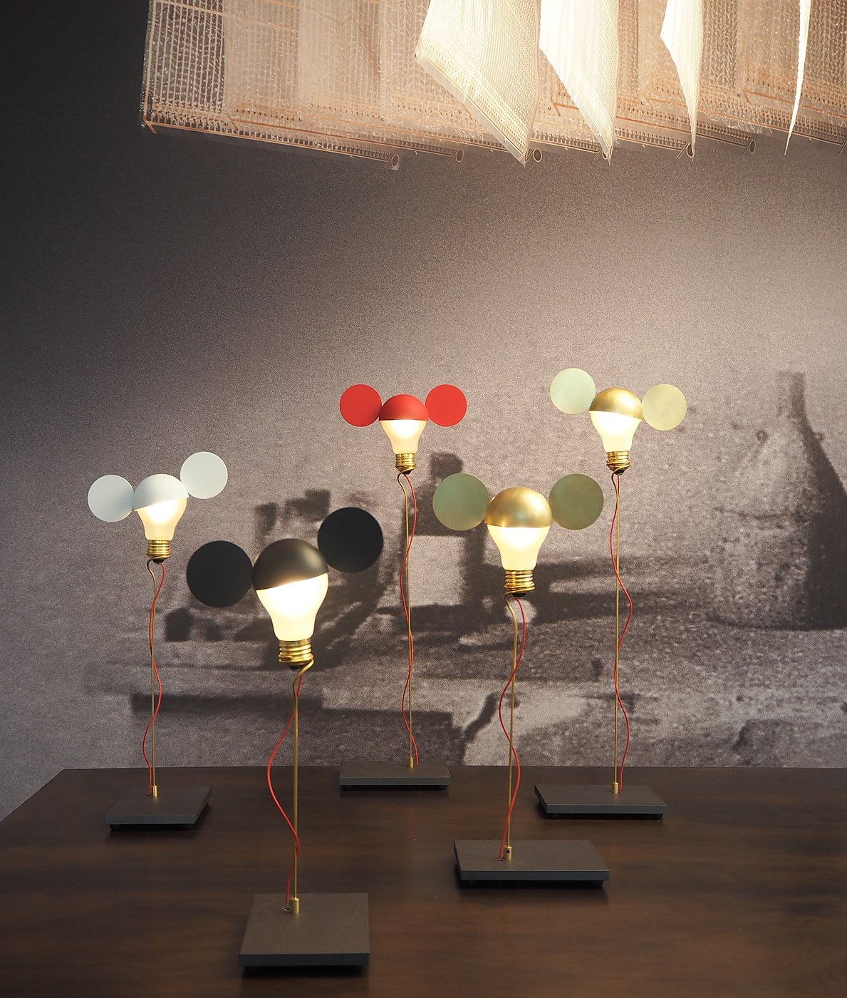 I Ricchi Poveri Toto, die Glühbirne mit Ohren, ist Teil der Ricchi Poveri Serie, einer Gruppe von kleinen, unprätentiösen Beleuchtungsobjekten, die Ingo Maurer erstmals im April 2014 präsentierte.