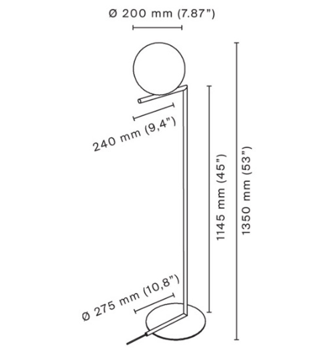 Die IC Light Stehleuchte ist in zwei Größen erhältlich: F1 (Höhe 135 cm) und F2 (Höhe 185 cm).