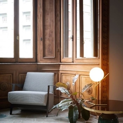 IC Light ist eine Serie von Leuchten, die aus Wandlampen, Deckenlampen, Stehlampen, Tischlampen und Pendelleuchten besteht, wobei das Material in matt Messingfarbe, Chrom, matt Schwarz oder Weinrot mit weißem Opalglas erhältlich ist.