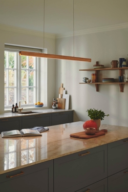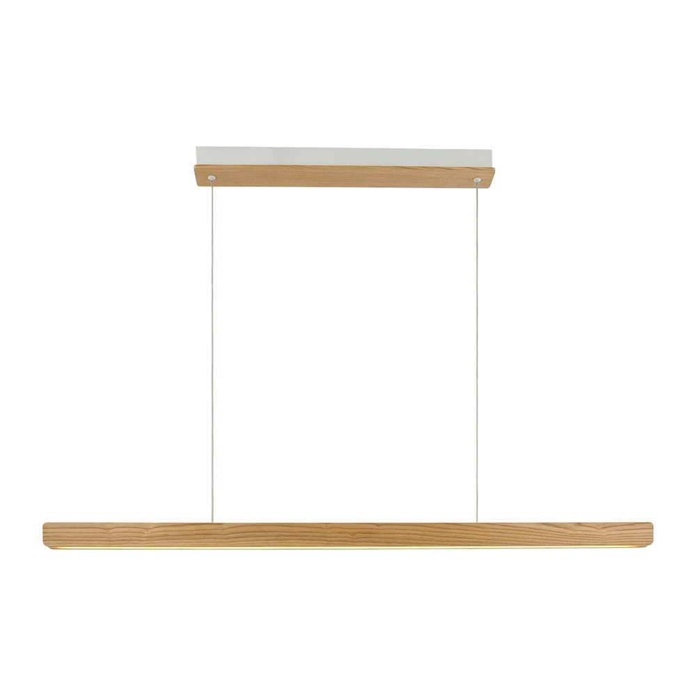 Die schlanke Pendelleuchte Ilgas hat ein charakteristisches skandinavisches Design, das natürliche Materialien wie Holz elegant mit moderner Funktionalität kombiniert. Das klare Design sorgt für ein angenehmes, warmes Licht und ist eine gute Wahl über dem Esstisch und der Kücheninsel oder im Wohnbereich.