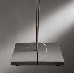 Ingo Maurer Illios Stehleuchte ist aus Metall, Glas und rotem fluoreszierendem Isolator gefertigt. Lichtquelle: 50W. Mit Halogenlampe 35W (860 lm - 2900 K, 4000 h)