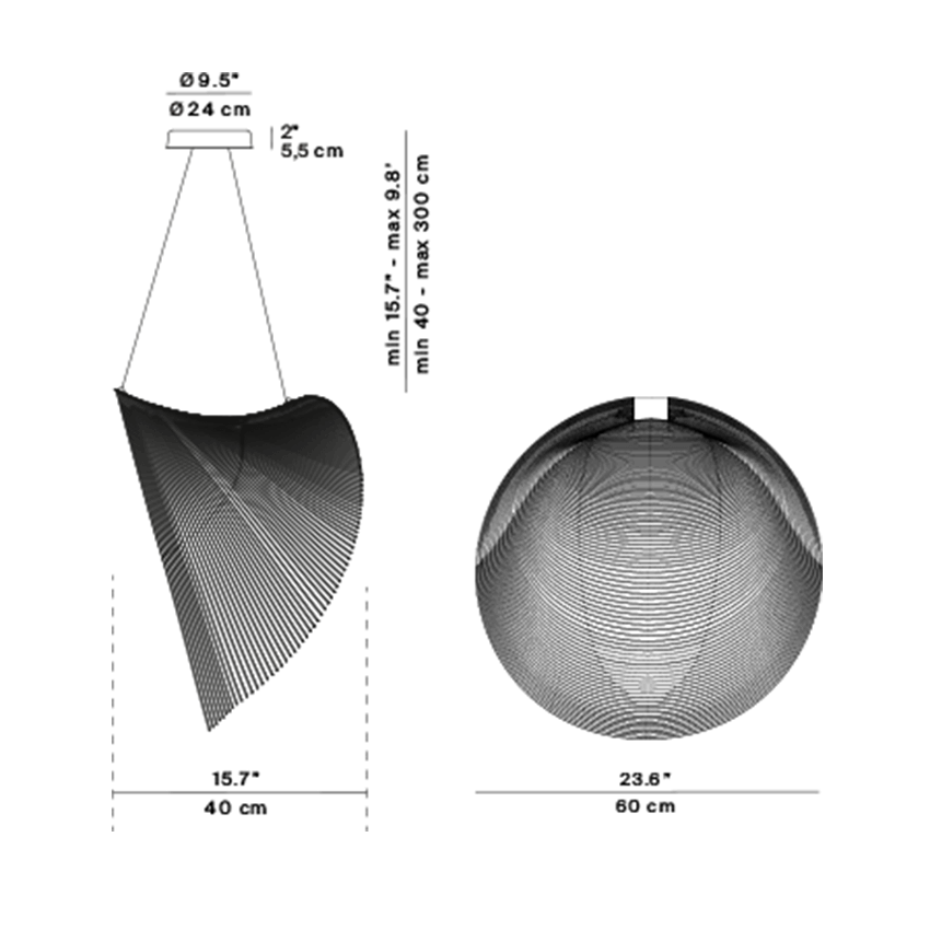 Mit ihrem kreativen Design und hochwertigen Materialien ist die Pendelleuchte eine gute Wahl, zum Beispiel als Esstischlampe. Die Lampe ist in drei verschiedenen Größen erhältlich: Ø60, Ø80 und Ø100.